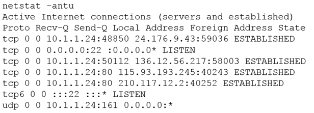 A penetration tester is conducting a penetration test and discovers a vulnerability on a web server that is owned by the client. Exploiting the vulnerability allows the tester to open a reverse shell. Enumerating the server for privilege escalation, the tester discovers the following: