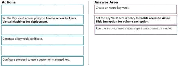 You have an Azure subscription that contains as Azure key vault and an Azure Storage account. The key vault contains