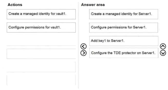 You have an Azure subscription that contains a Microsoft SQL server named Server1 and an Azure key vault named vault1.