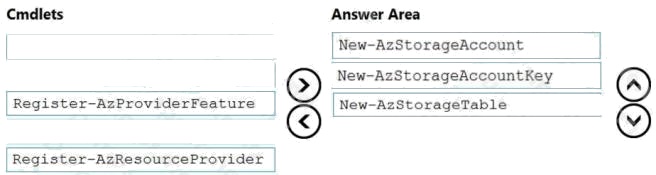 the list of cmdlets to the answer area and arrange them in the correct order.
