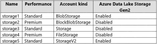 You have an Azure subscription that contains the storage accounts shown in the following table.