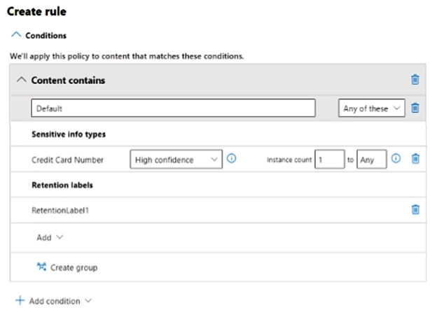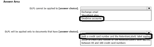 HOTSPOT You configure a data loss prevention (DLP) policy named DLP1 with a rule configured as shown in the following exhibit.