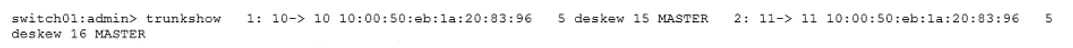 The ISL ports are reporting errors. The trunkshow command output from a Brocade switch is shown