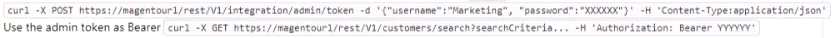 Using integration name as username and access token as password, get the admin token (YYYYYY)