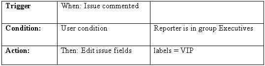 A user wants to add the label VIP to an issue when any member of the Executives group adds a