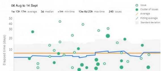 over a specified period. It provides insights into how long issues took to resolve, aligning exactly with