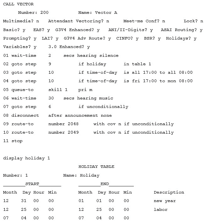 Given the information in the exhibit, what happens to a call if someone calls this vector on Tuesday