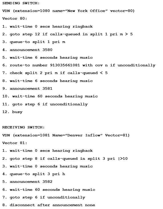 in queue. After setting vectors in the exhibit you find that calls are interflowing to Denver.