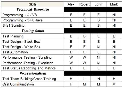 skill identified for the “technical expertise” and “testing skills” sections, and with the ability to train