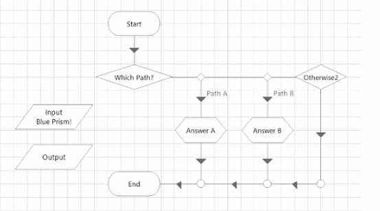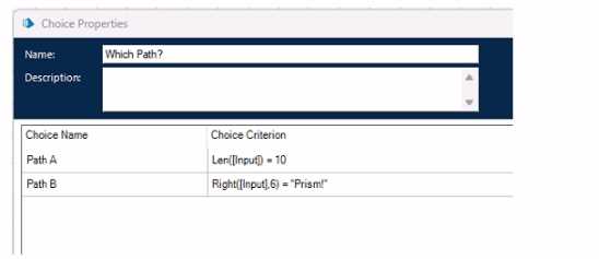 "Prism!"" is true for the given input "Blue Prism!". This means the flow will follow Path B, and the