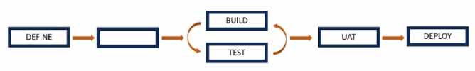 The phase between Define and Build is Design. This phase involves creating detailed designs of the