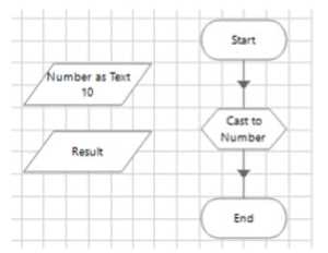 The 'Number as Text' data item is configured as text data item: and has an initial value of 10 The