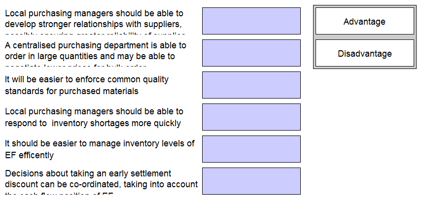 disadvantage of implementing a centralized purchasing system for EF.