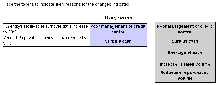 Indicate the possible reasons for the changes identified below to working capital ratios by placing the