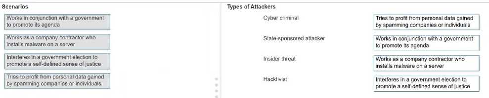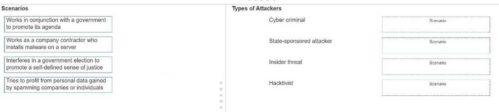 Move each scenario from the list on the left to the correct type of attacker on the right.