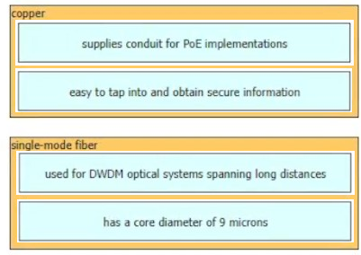 Drag and drop the characteristic from the left onto the cable type on the right.