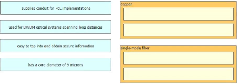 Drag and drop the characteristic from the left onto the cable type on the right.