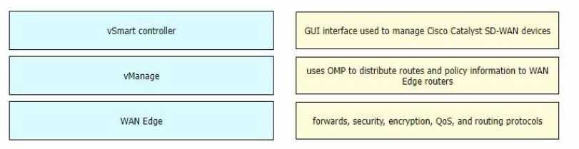 Drag and drop the Cisco Catalyst SD-WAN components from the left to their definitions on the nght