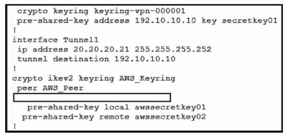 Refer to the exhibit. An engineer needs to configure a site-to-site IPsec VPN connection between an