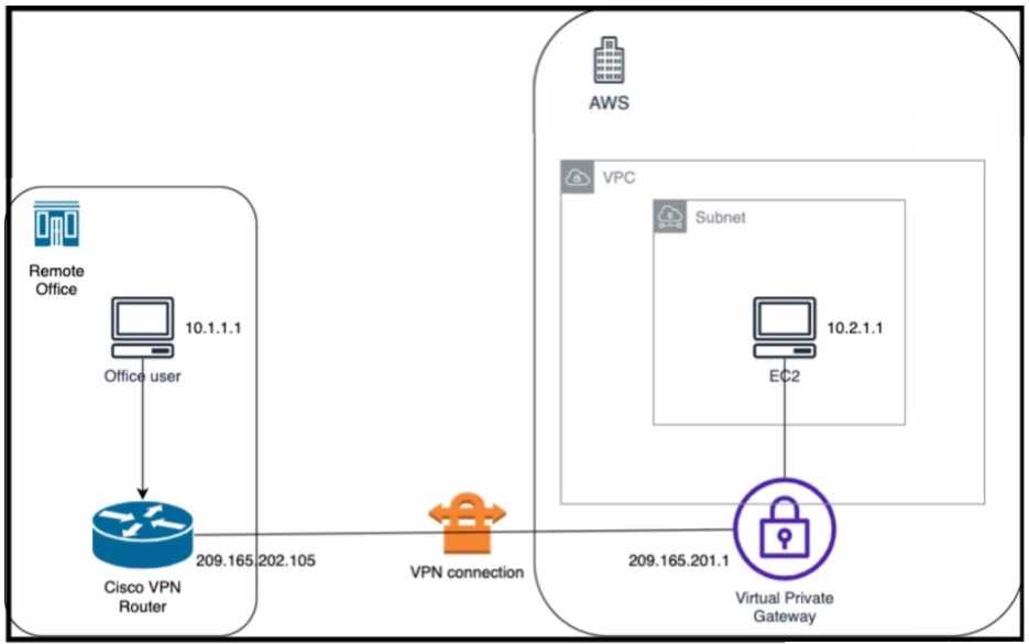 Cisco IOS XE router and Amazon Web Services (AWS). IPsec must be configured to support multiple