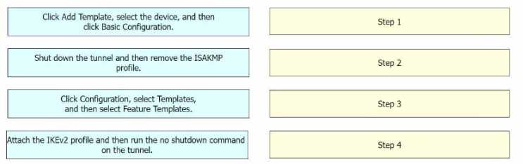 vManage. Drag and drop the steps from the left onto the order on the right to complete the
