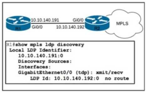 Routers R1 and R2 are RFC 5036-based MPLS-enabled core routers MPLS IP is enabled globally on