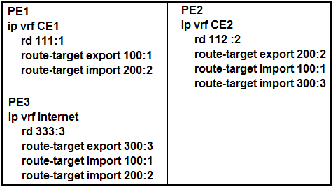 A. Configure PE3 to export route-targets 100:1 and 200:2.