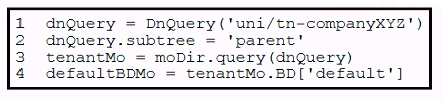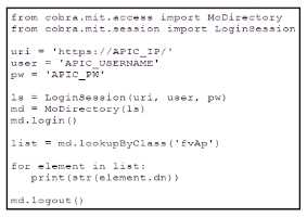 Which action does the execution of this ACI Cobra Python code perform?