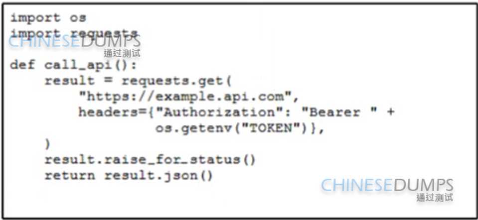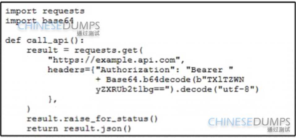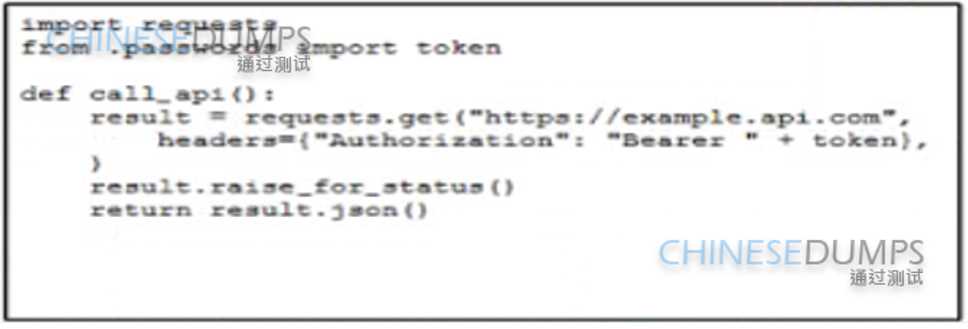 An engineer is developing a script that must call an API using a static Bearer token Which solution