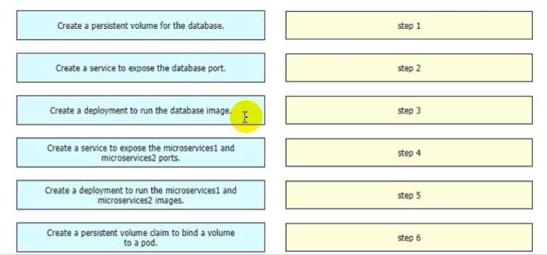using the provided docker-compose yml file Drag and drop the steps from the left into order on the