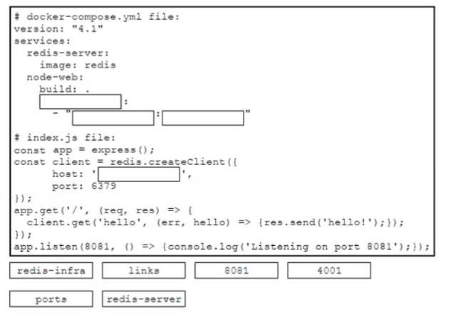 containers of a Redis instance and a Node js web application The application must be reachable on