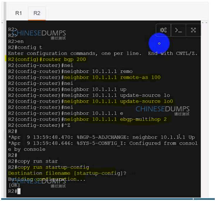 Nei 2000:cc13:cc13:2::1 ebgp-multihop 2
