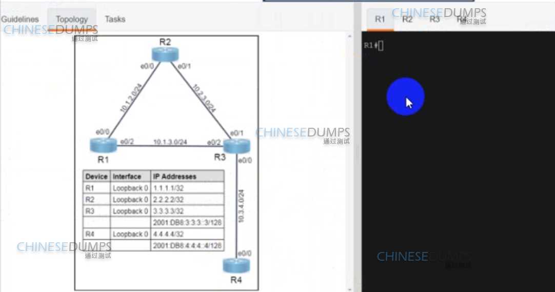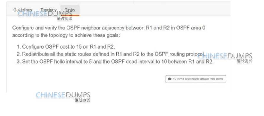 exchange routes using OSPF. The link between R1 and R2 has been providing inconsistent performance, particularly during