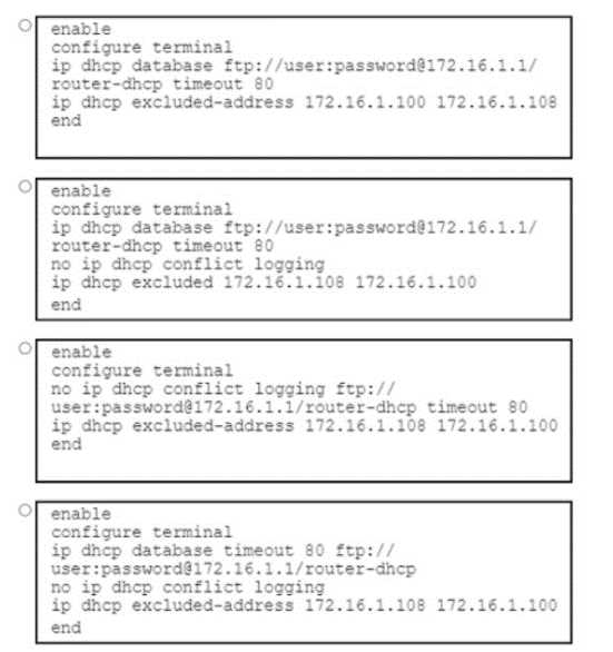 IP address of 172.16.1.1. The IP address range of 172.16.1.100 to 172.16.1.108 must be blocked from