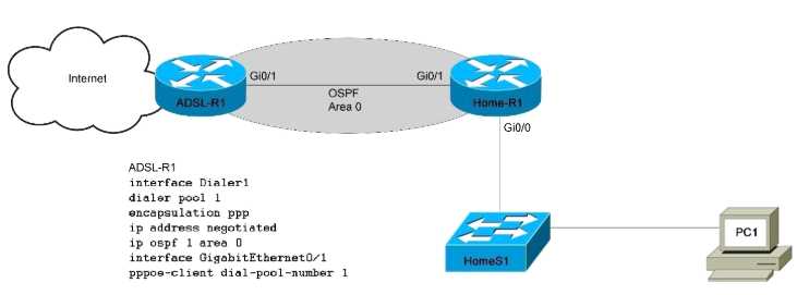 E. Confiqure OSPF on the connection between PC1 and HomeSI.