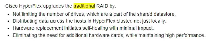 Which two ways does Cisco HyperFlex upgrade the traditional RAID? (Choose two.)