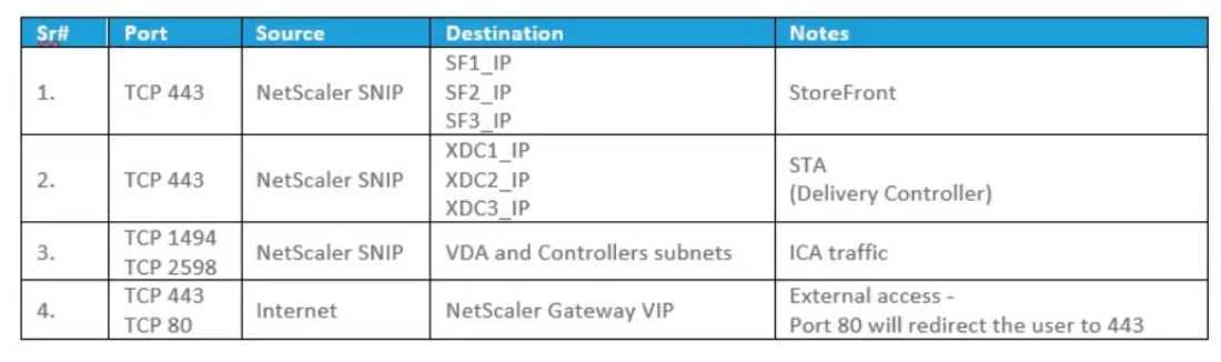 On the internal Citrix ADC, load balancing for StoreFront services, Citrix XML services, and Citrix