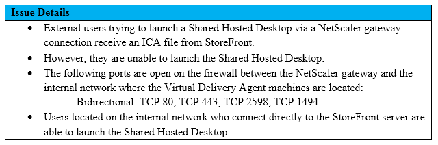 On the external Citrix ADC. the Gateway virtual server must be configured in ICA proxy mode