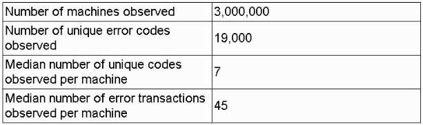With 19,000 possible error-code features and each machine reporting only a handful (median of 7),