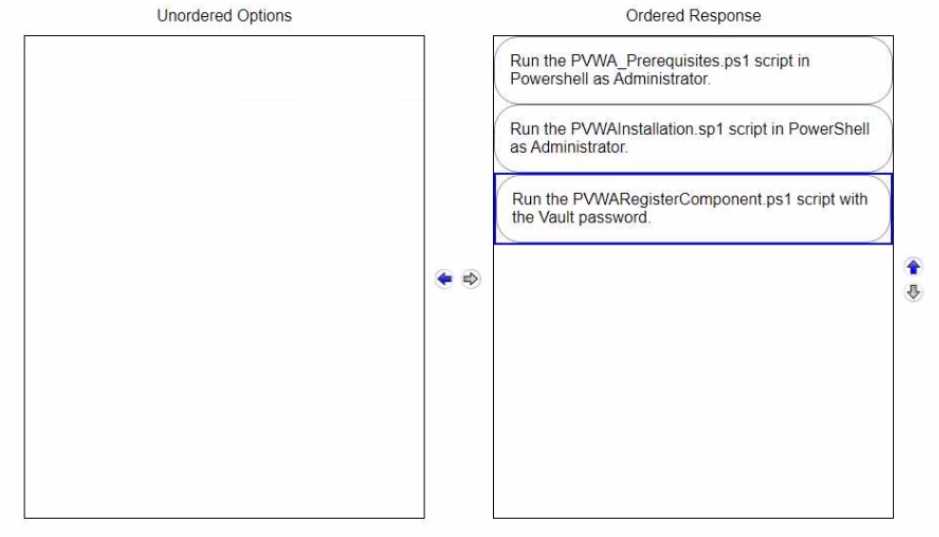 DRAG DROP Arrange the steps to install the Password Vault Web Access (PVWA) in the correct sequence