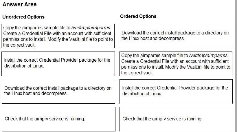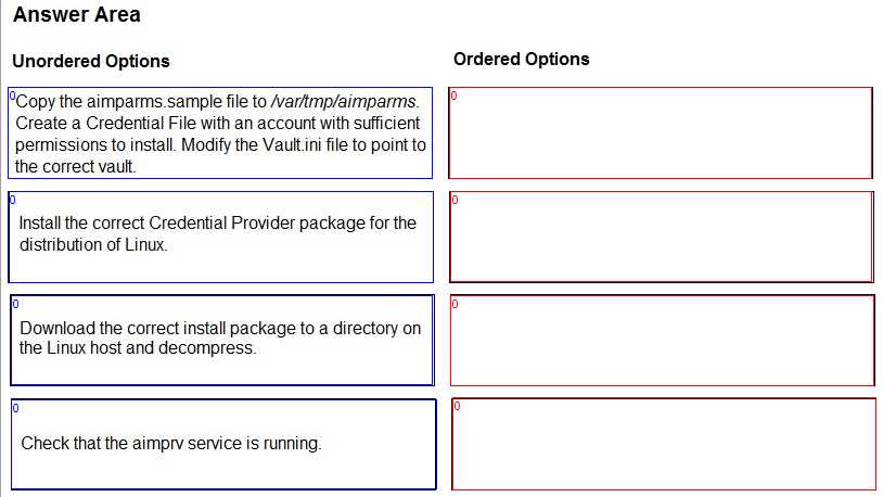 You are installing a Credential Provider on a Linux host. Arrange the installation steps in the correct