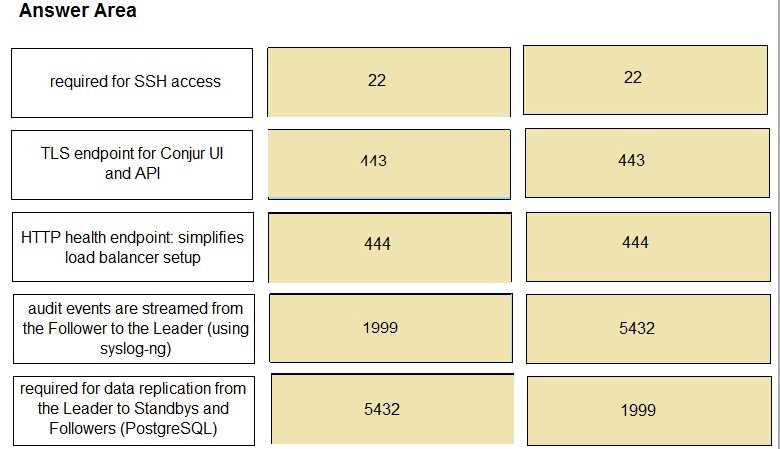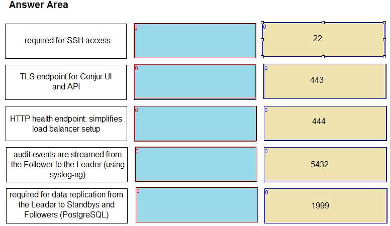 Match the correct network port to its function in Conjur.