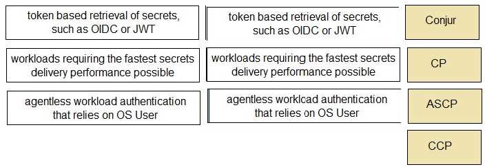 Match each use case to the appropriate Secrets Manager Solution.