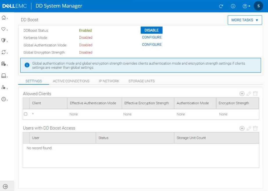 is disabled. Since DD Boost is essential for optimized data transfer during backups, its disabled status
