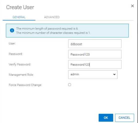 Set the username as ddboost and the password as Password123.