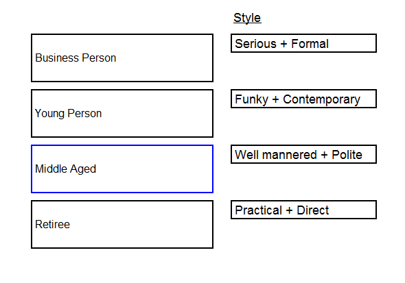 You have been attempting to build an audience persona and have taken into account factors such as: