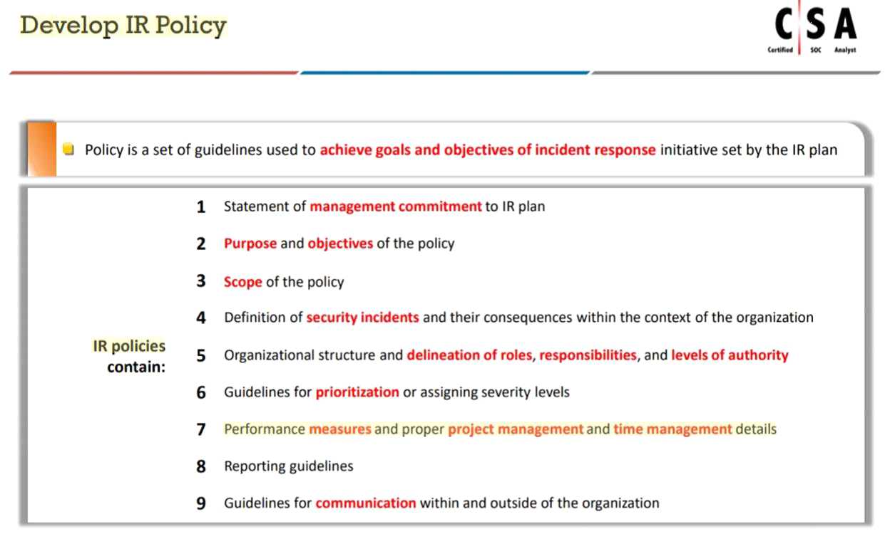 responsibility to finalize strategy, policies, and procedures for the SOC.