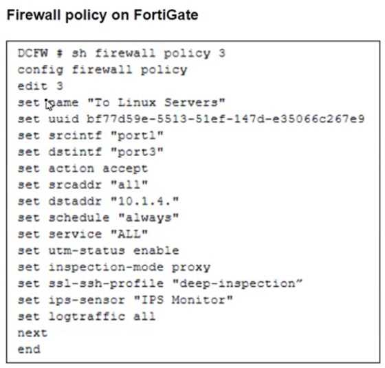analyze encrypted HTTPS traffic. However, the firewall policy is protecting an SSL server (the Linux