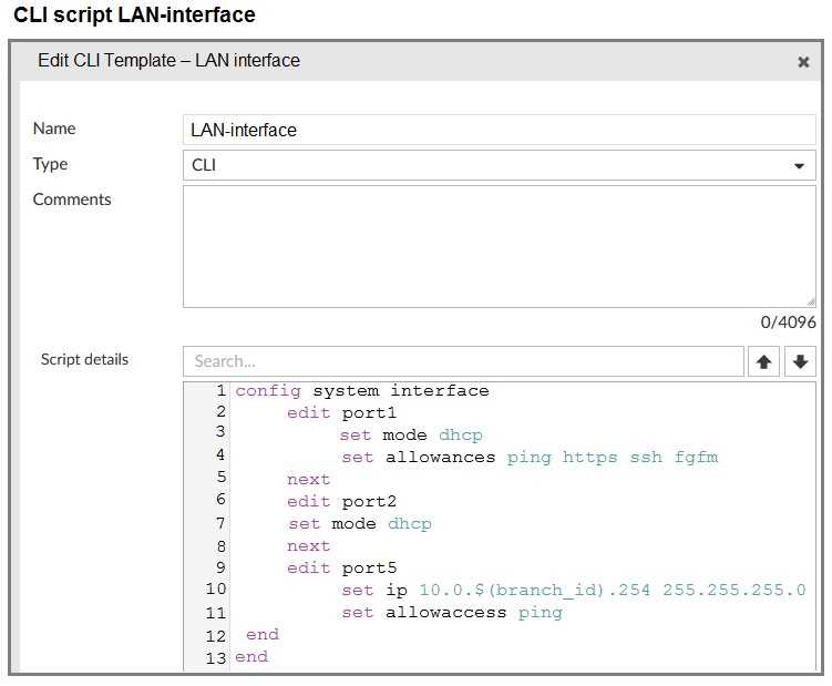 branch_id variable). Therefore, when FortiManager pushes the blueprint, it updates the