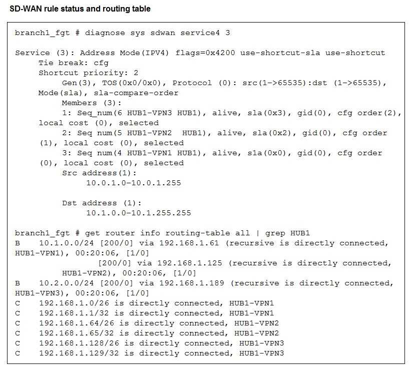 a higher-priority member fails SLA. If HUB1-VPN1’s latency exceeds the SLA threshold (here